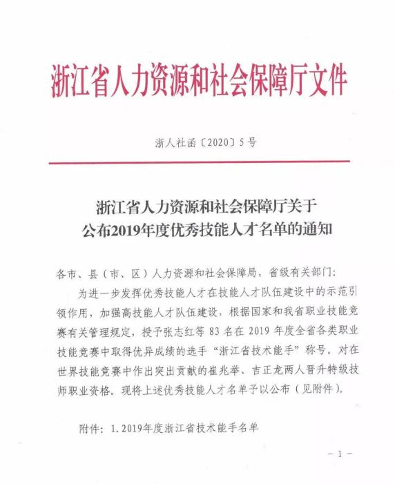 日前,浙江省2019年度優秀技能人才名單公布,我公司員工錢曉良、謝亨勇同志在第八屆全省水利行業職業技能競賽暨第三屆全省水利工程標準化管理職業技能競賽中表現優異,榮獲“浙江省技術能手“稱號。