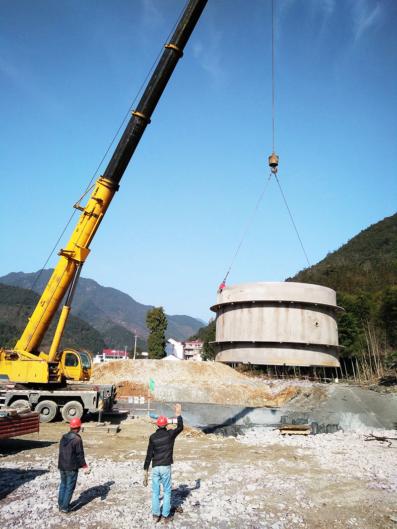 千島湖配水工程公司承建千島湖進水口、千島湖-閑林等多個地區(qū)的取水口的閘門、啟閉設(shè)備、攔污柵等金屬結(jié)構(gòu)及設(shè)備安裝;出水口調(diào)流閥室等部位的壓力鋼管安裝。累計安裝了品種規(guī)模型號眾多的壓力鋼管,口徑最大達5m。公司及項目部全體人員自開工以來克服了施工區(qū)域多、工期緊、吊裝難度大等諸多困難。特別是由于金竹牌進水口南移,進水口事故檢修閘門及啟閉設(shè)備變成洞內(nèi)吊裝,受高度及吊裝空間等限制,給閘門的安裝增加了很大的難度。 我公司迎難而上、大膽創(chuàng)新,經(jīng)過多次與業(yè)主、設(shè)計、監(jiān)理、土建單位溝通協(xié)調(diào),邀請有關(guān)專家論證專項吊裝方案,最終順利在洞內(nèi)完成這一項起吊重量約60噸、高度約50米的高難度安裝任務(wù)。