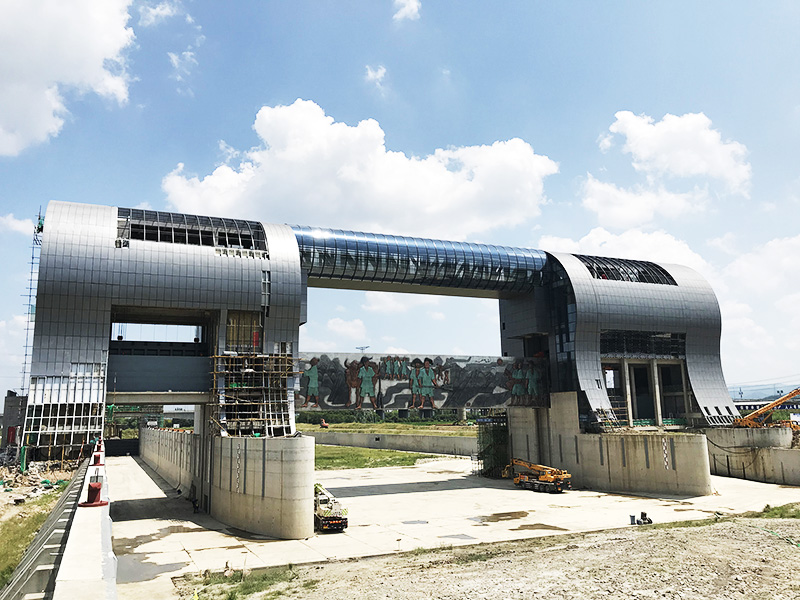 江能公司同有關單位的配合創作了巨幅彩色金屬浮雕作品,以焊接型式固定在閘門上游側整體面板上,使閘門成為有觀賞價值的景觀型閘門,這在國內尚屬首次。
